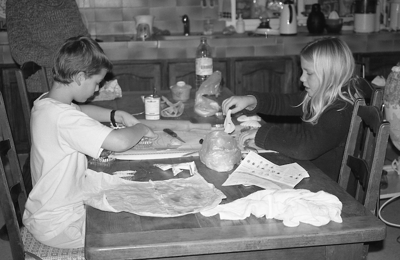 Décembre 2000, le lendemain de Noël arrivent par avion Thomas et Chloé, Ils ont grandi, ils sont plus réfléchis. Chloé parle toujours fort, je suis sûre qu’elle n’entend pas bien car elle me fait répéter et avoue ne pas toujours bien entendre la maîtresse. Thomas est très réservé, Il lui faut plusieurs jours pour être en confiance. Sylvain et Marie arrivent, le lendemain, Ils feront le réveillon chez Tonio. Je trouve ça triste pour les deux enfants d’être chez les Vieux, Tout seuls, On s’occupe à faire des gâteaux, Thomas participe pour les apéritifs, Chloé est efficace, champion, je peux lui confier entièrement les préparations .Thomas n’aime pas les fenêtres sales de la cheminée, torse nu, protégé par un grand tablier, il m’aide très bien à les nettoyer. On joue au mistigri, Chloé est toujours une bonne tricheuse, Ils ne se disputent pas trop. L’ordinateur est en panne, Thomas est un peu désoeuvré, il est d’accord pour faire le travail d’allemand, le travail est un peu anarchique, mais comme le cahier, il faudrait du temps pour revoir tous ces problèmes. Enfin il ne s’en tire pas mal. Espérons.