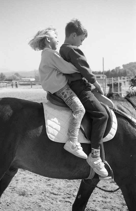 En juillet 1999… Naomi et Chloé s’entendent très bien et cherchent à rendre service et à se montrer raisonnables. Nous allons à la piscine chez Fadier, Elles font des cabrioles dans l’eau et montrent à Jean Gassin tout ce qu’elles savent faire. On gonfle l’orque et on joue dans l’eau, on gonfle la piscine dans notre jardin et on fait les folles.