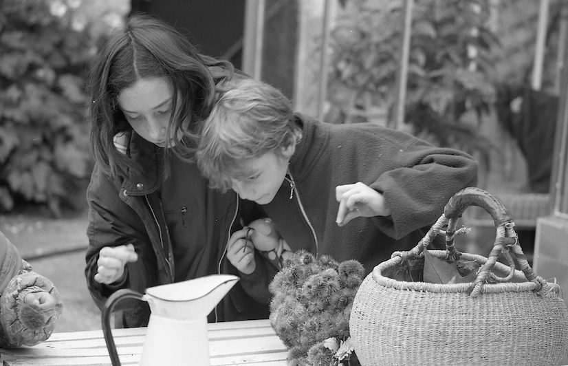 Notre audace ne faisait que croître. Qui nous avait donné l’idée de « gagner des sous » pour acheter ces fameux bonbons ? On avait remarqué, avec Irène, que si on frottait une bogue de marron, tombé de l’arbre, elle brunissait, devenait plucheuse, ressemblait alors à une petite éponge, de couleur foncée qui pouvait ressembler à un vague produit ménager. Nous voilà donc à fourbir nos marrons, à les ranger dans une boîte, à chercher un acheteur. Pourquoi avons-nous atterri chez deux vieilles femmes ? Parce qu’elles devaient avoir une très mauvaise vue et que dans leur cuisine on y voyait goutte ! Effrontément on leur expliqua qu’on vendait, pour la coopérative de l’école, des éponges capables de nettoyer les casseroles. Elles nous donnèrent une somme modique qu’on employa toute suite à acheter des bonbons.