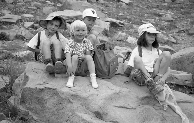En juillet 2001, à Saint lary-Aragnouet campent Thomas, Chloé Antoine… avec Sylvain… et le chien,… Christine et le filles… et des copains, au fond du camping légèrement en contre bas. Nous sommes avec Naomi et sa copine Marine. Nous les voyons rapidement, en bandes. Ils se promènent dans le camping, vont en montagne avec Coco, je reste dans la caravane très prise par les rhumatismes. Des soirées au restaurant. Un aperçu de petits drames larvés, Chloé aimerait être avec les grands. Thomas aime bien venir avec moi boire son nesquick.